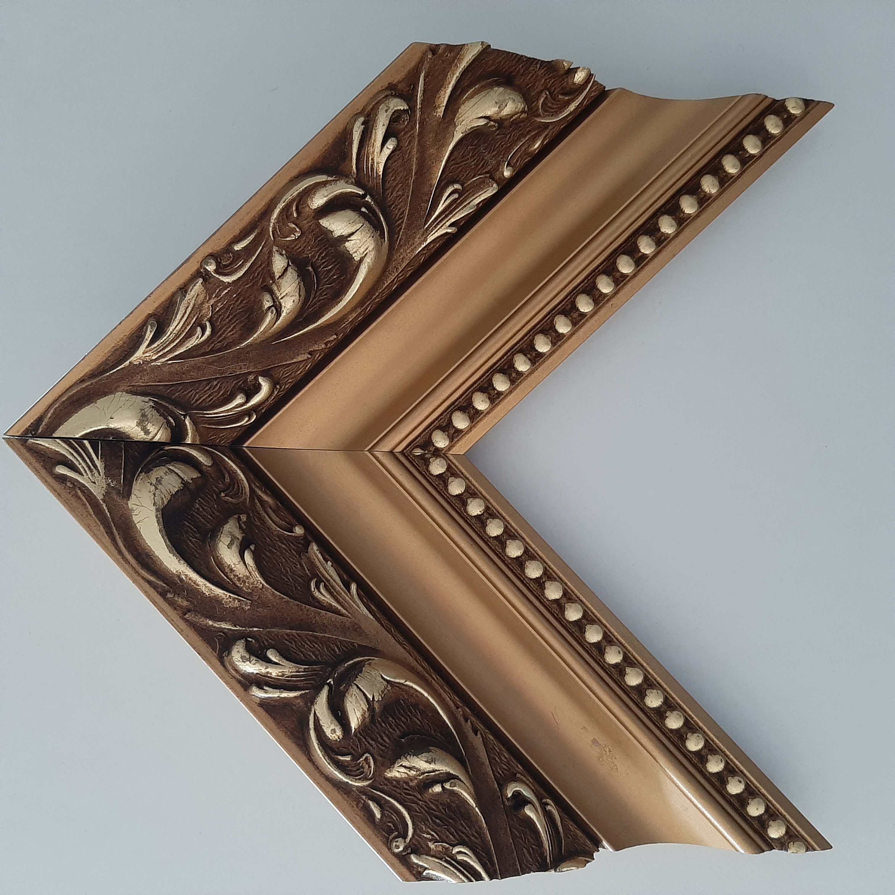 C 68 90 mm széles bronz leveles képkeretléc barna patinával